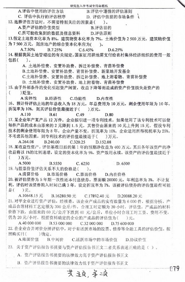 2016 经济学院 资产评估基础试题回忆 1、名词解释:需求、帕累托最优化状态、外部经济与外部不经济(还有几个记不清了) 2、简答题:建筑物评估的特点、股利分配和股票回购的异同、生产者均衡的条件(依然有几个记不清了) 3、判断题:经济学、财务管理、资评的内容全都有,对此只能说要好好看书,好好理解。 4、计算题 ...