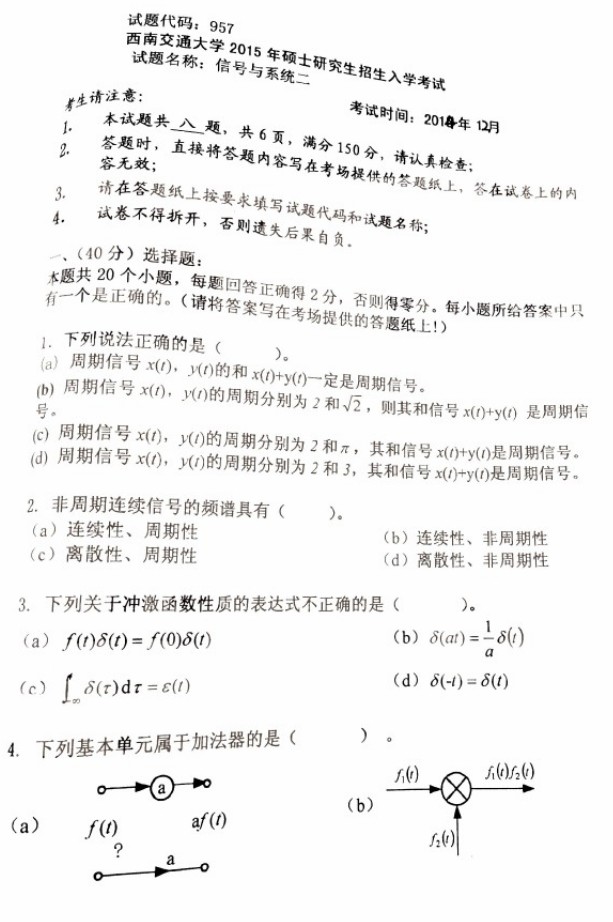 专业课考研资料 本站小编 免费考研网 2020-02-28南昌大学2017年信号与系统811考研真题