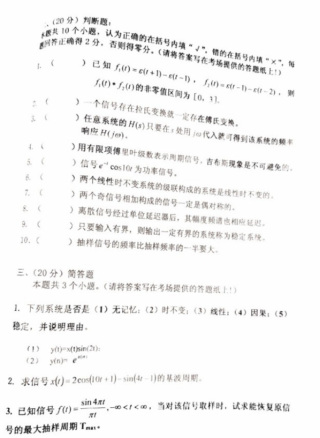 专业课考研资料 本站小编 免费考研网 2020-02-28南昌大学2017年信号与系统811考研真题