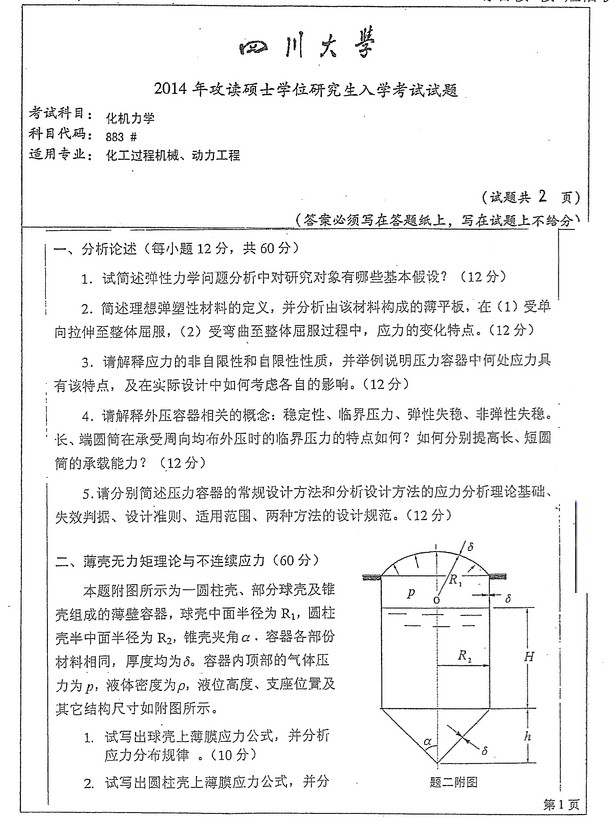 专业课考研资料 本站小编 免费考研网 2020-03-022016年四川大学855机械设计考研真题