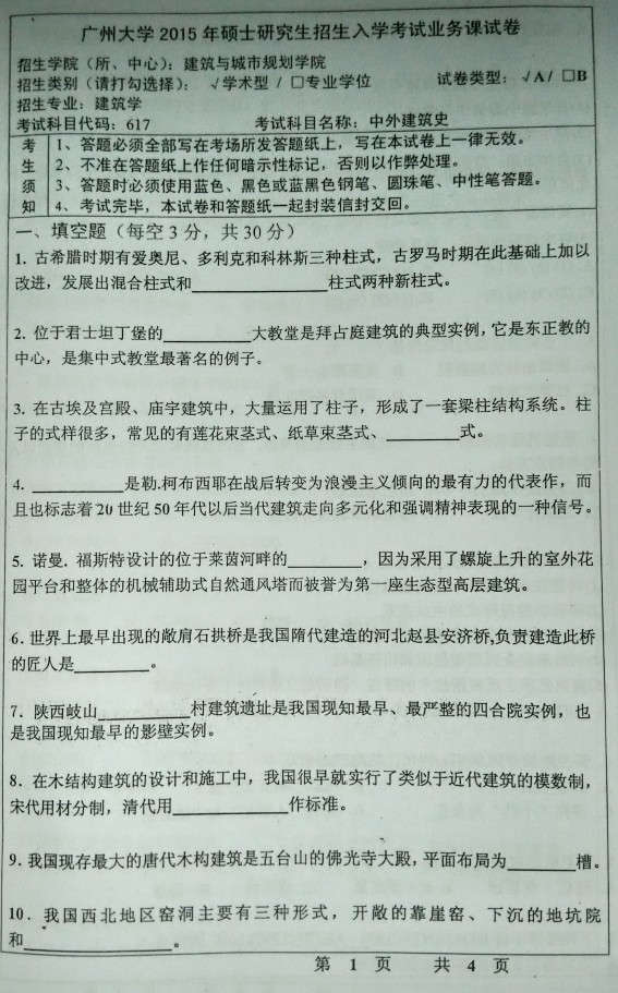 广州大学2017-2014中外建筑史617考研专业课真题(5)