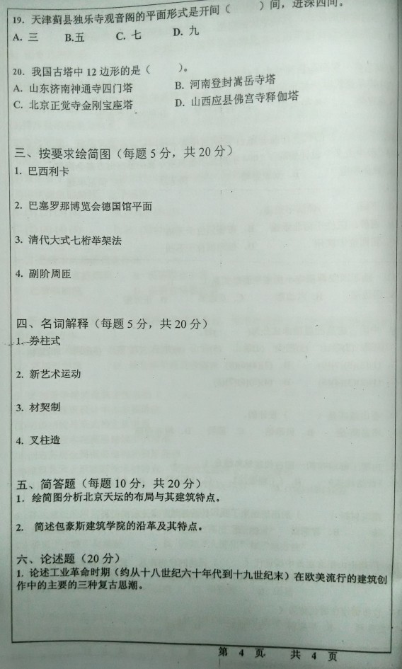 广州大学2017-2014中外建筑史617考研专业课真题(8)