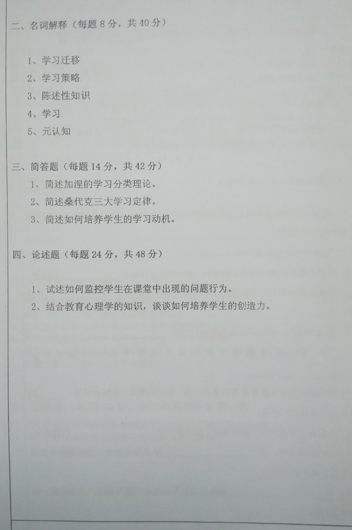 专业课考研经验 本站小编 免费考研网 2020-03-02四.专业课(347心理学专业综合,西南大学自主命题,题型:名词解释4道5分共20分、简答题4道10分、应用分析题4道30分、论述题3道40分 )