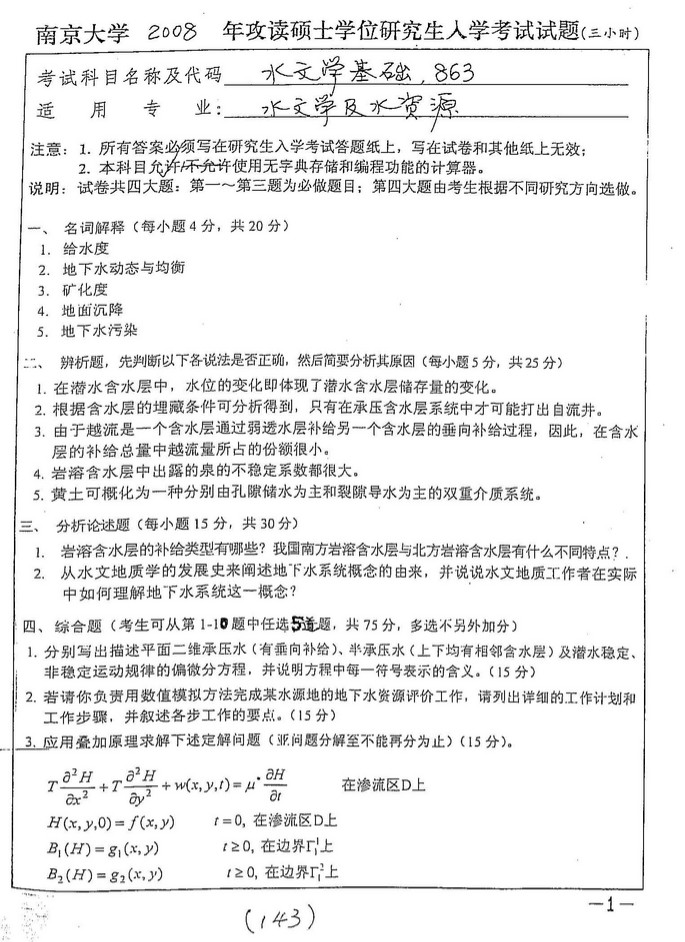 • 2019年中国地质大学水文地质学基础真题(回忆版)
