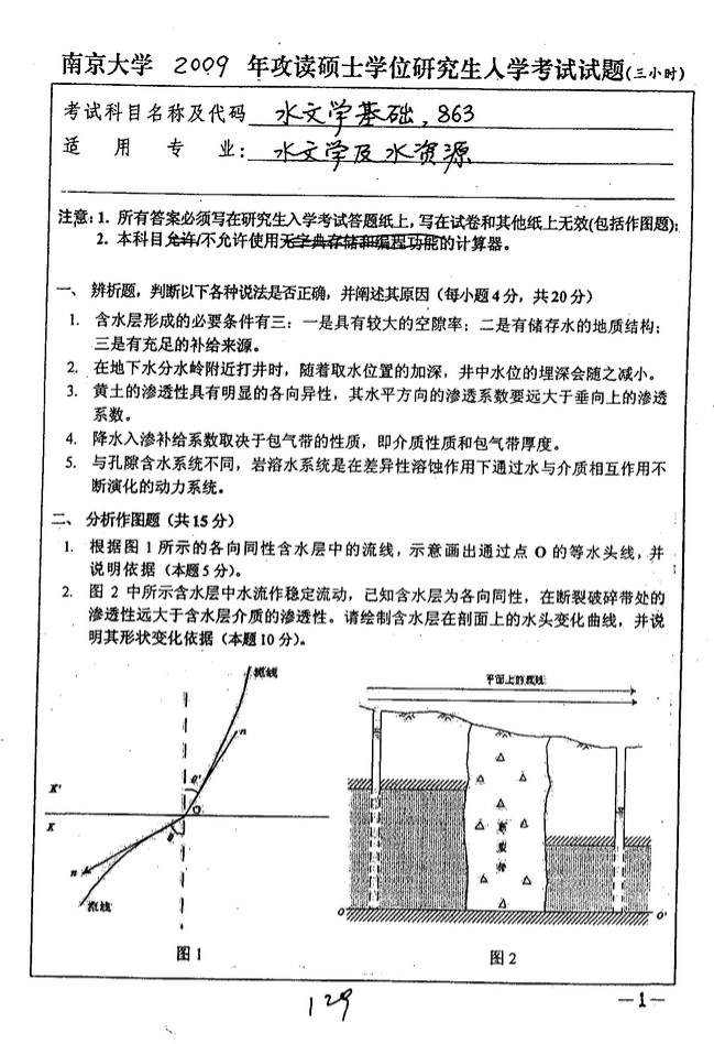 2008-2010年南京大学863水文学基础考研真题汇编(3)