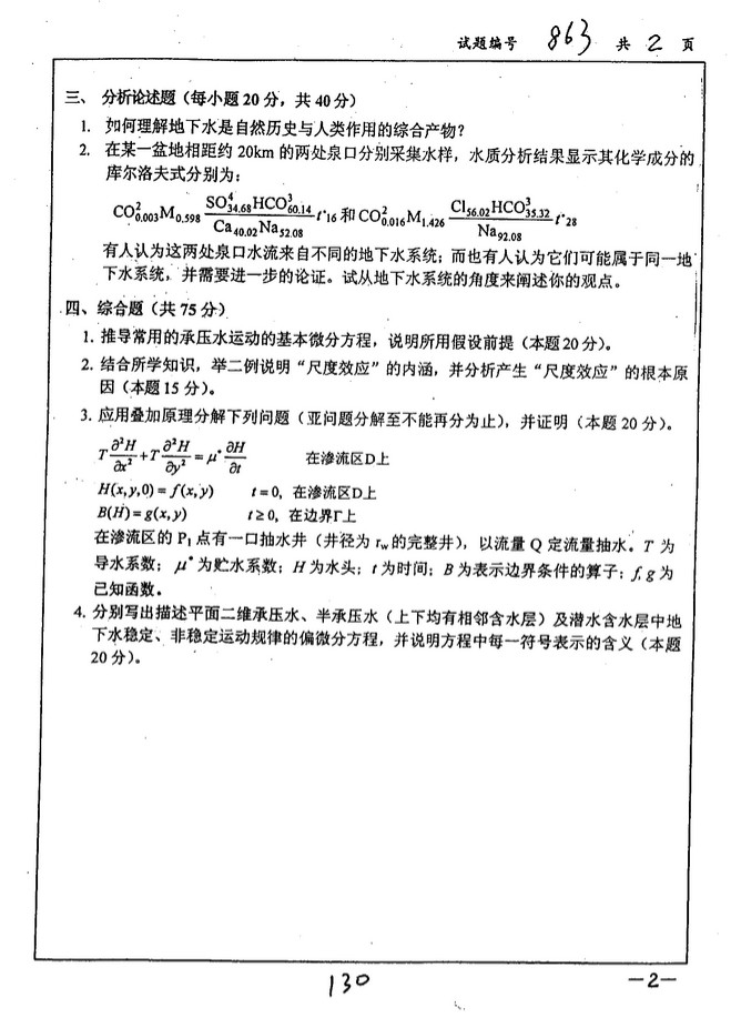 2008-2010年南京大学863水文学基础考研真题汇编(4)
