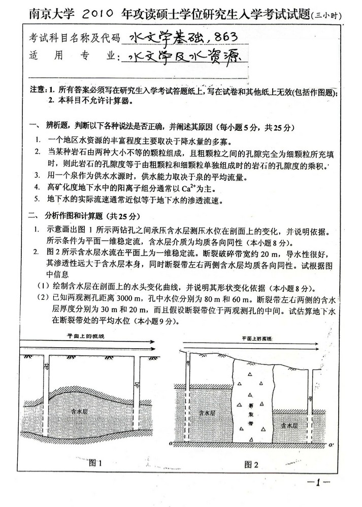 2008-2010年南京大学863水文学基础考研真题汇编(5)