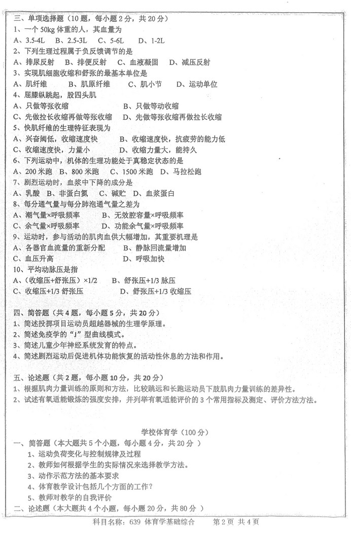 2017年南京师范大学639体育学基础综合考研真题(2)