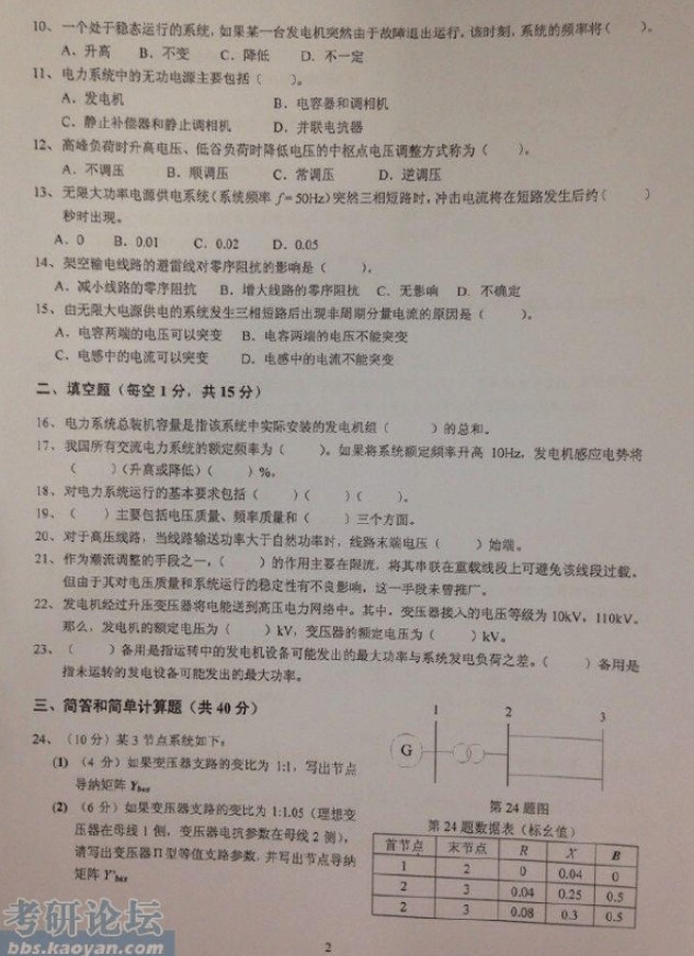 2011-2013年华北电力大学(北京)电力系统分析基础一考研初试真题(2)