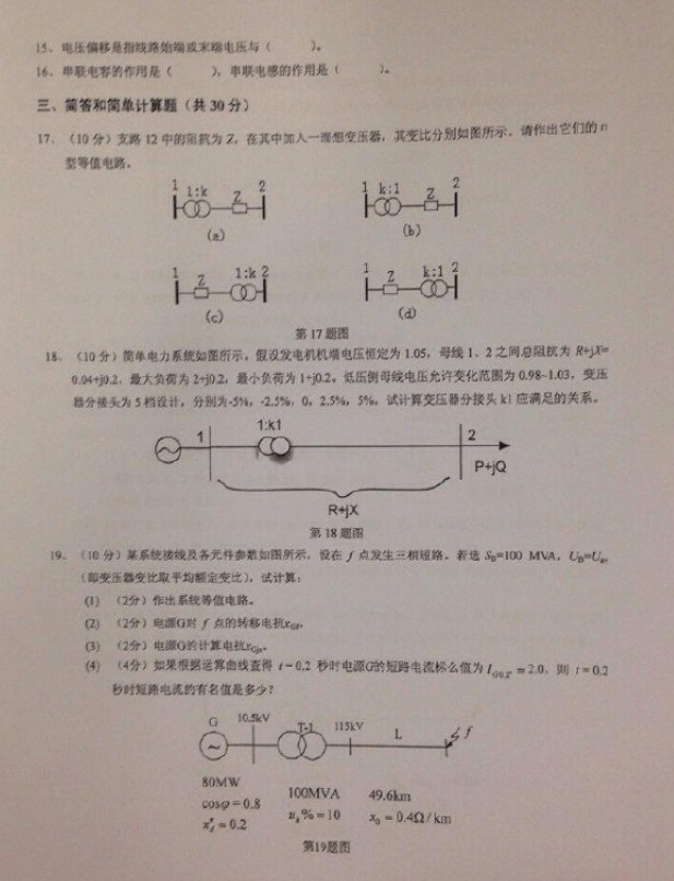 2011-2013年华北电力大学(北京)电力系统分析基础一考研初试真题(6)