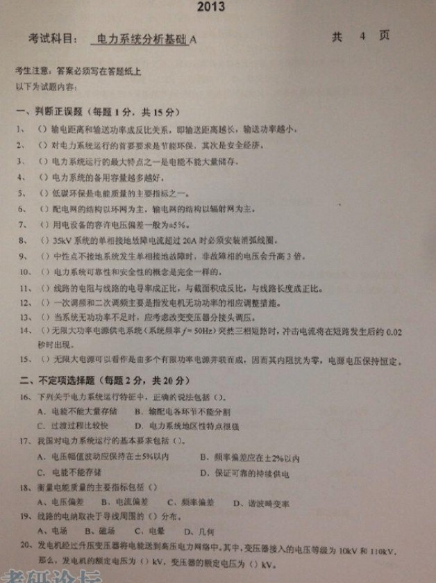 2011-2013年华北电力大学(北京)电力系统分析基础一考研初试真题(8)
