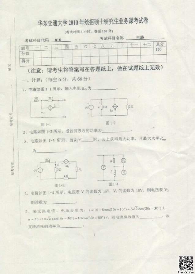 华东交通大学2009-2012年810电路考研真题汇编(3)