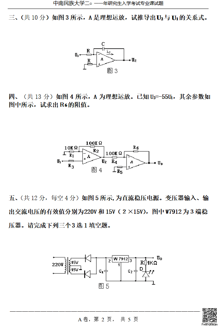 中南民族大学2011年考试试题(846模拟与数字电子技术)A卷(2)