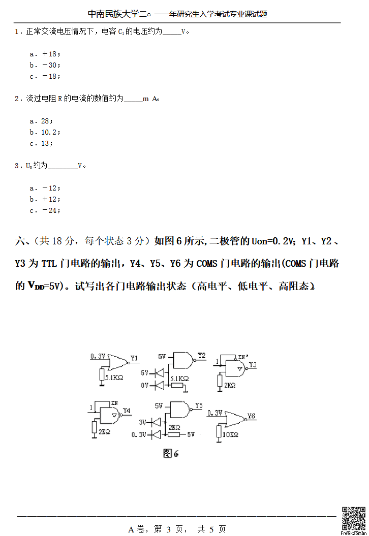 中南民族大学2011年考试试题(846模拟与数字电子技术)A卷(3)