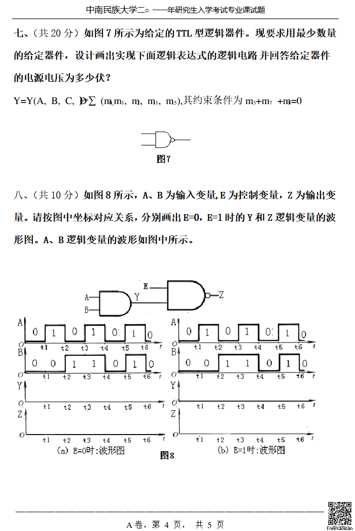 中南民族大学2011年考试试题(846模拟与数字电子技术)A卷(4)
