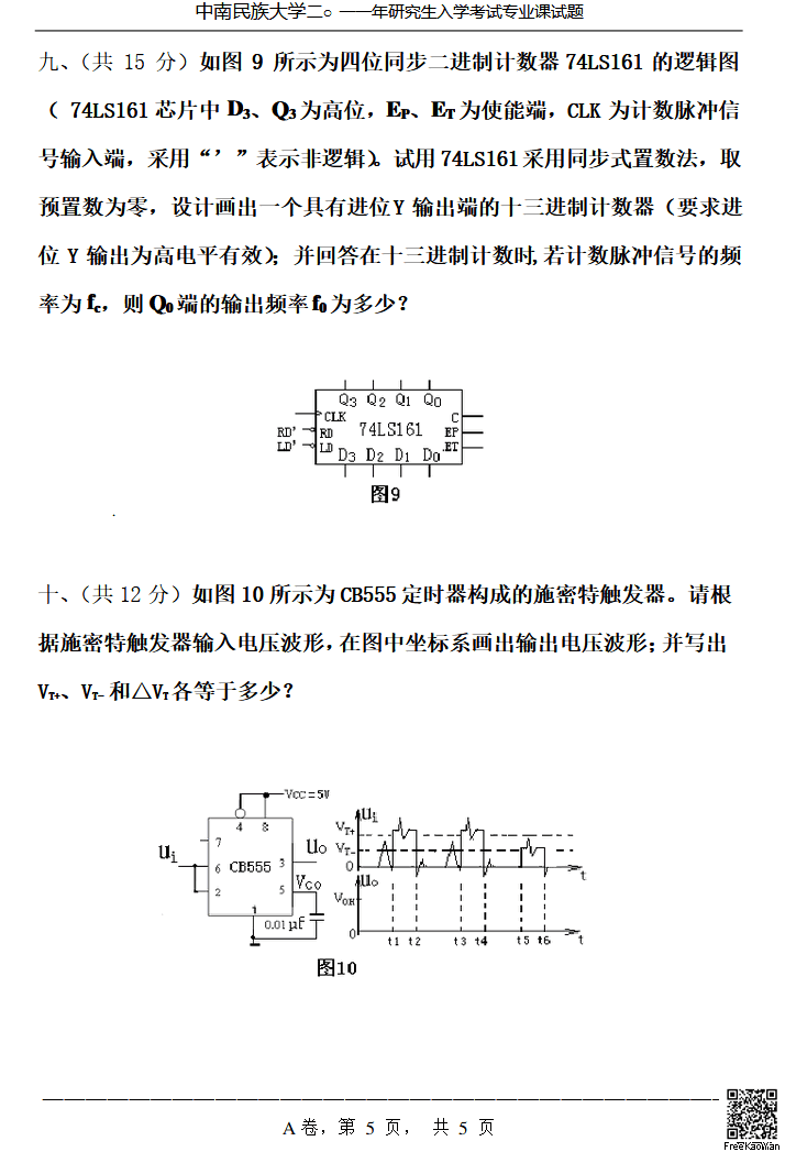 中南民族大学2011年考试试题(846模拟与数字电子技术)A卷(5)