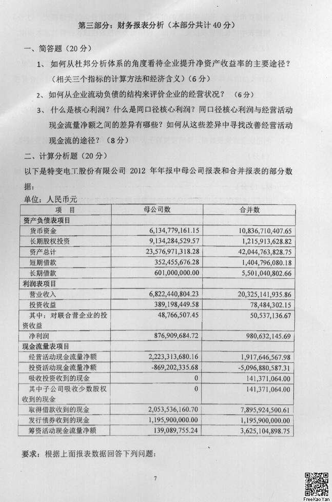 2014年对外经济贸易大学会计学综合831考研真题(7)