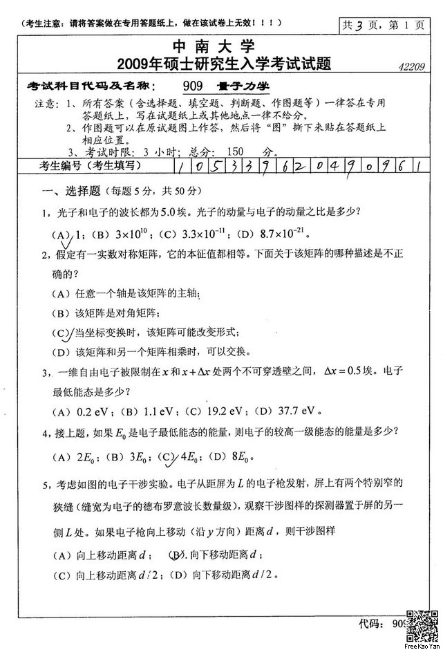 专业课考研资料 本站小编 免费考研网 2020-03-022013年北京师范大学959量子力学考研真题