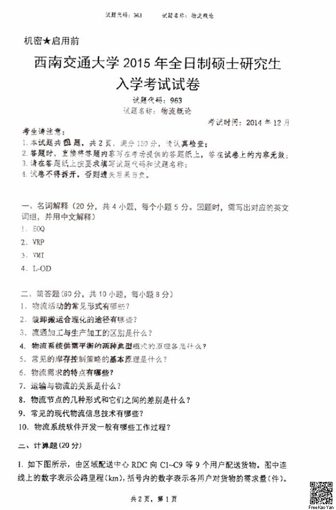 标题: 2020西南交通大学管理与科学853运筹学真题回忆