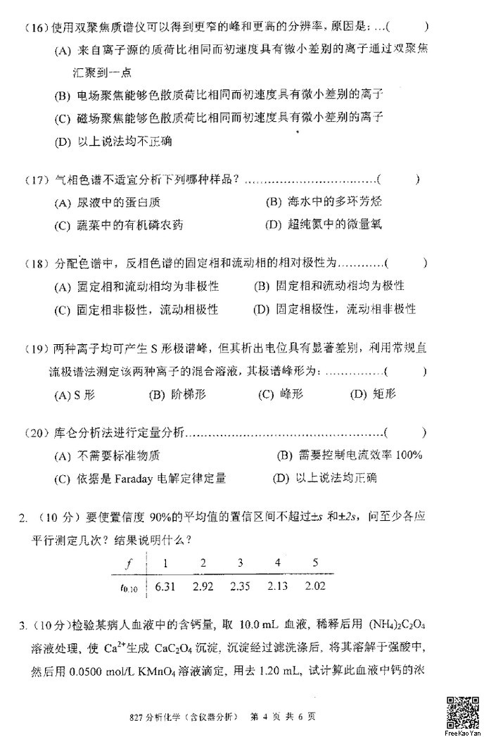 2011年厦门大学分析化学(含仪器分析)827考研真题(4)