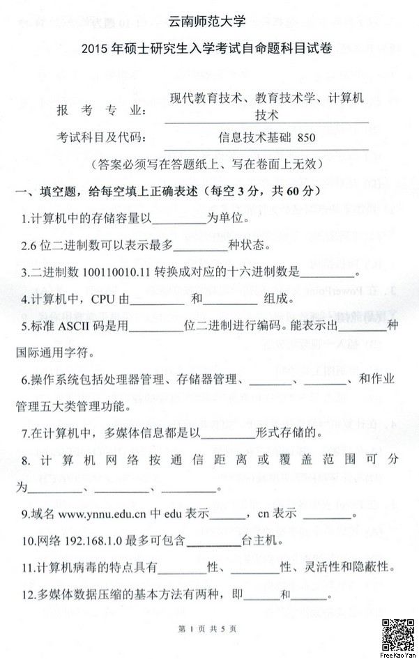 云南师范大学2019年820高级英语考研真题 本站小编 免费考研网 2020-03-02