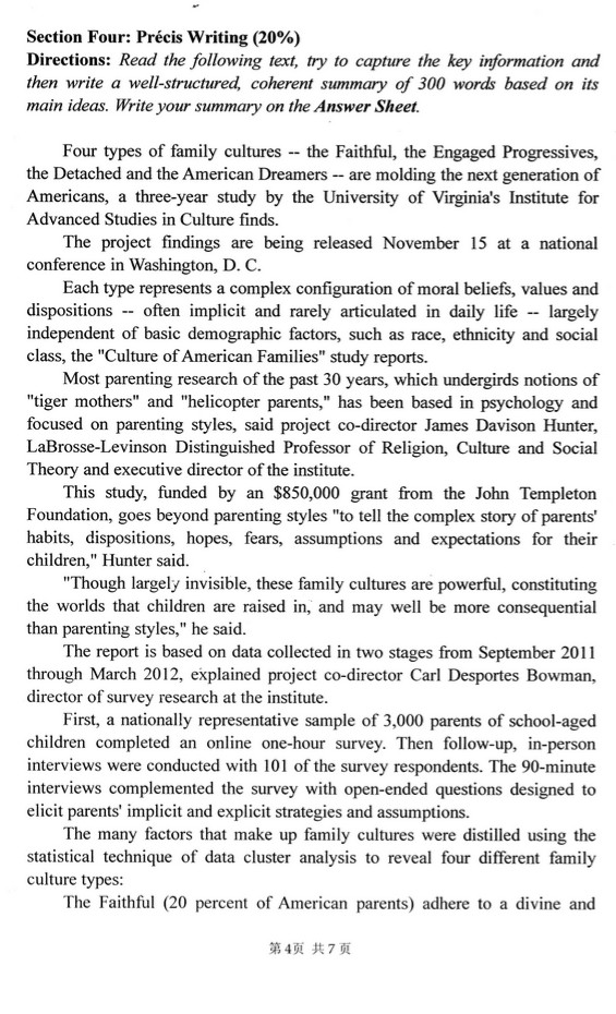 西安外国语大学2014翻译硕士MTI翻译硕士英语211考研真题(4)