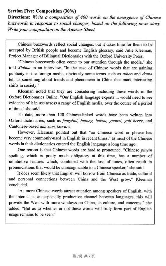 西安外国语大学2014翻译硕士MTI翻译硕士英语211考研真题(7)