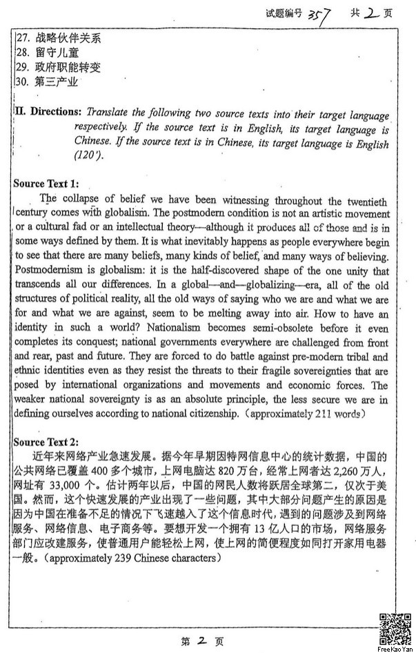 南京大学2013翻译硕士MTI英语翻译基础357考研真题(2)