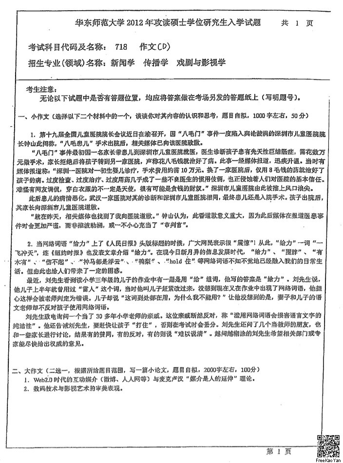 2010-2015华东师范大学718作文(D)考研真题汇编(3)