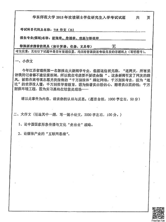 2010-2015华东师范大学718作文(D)考研真题汇编(6)