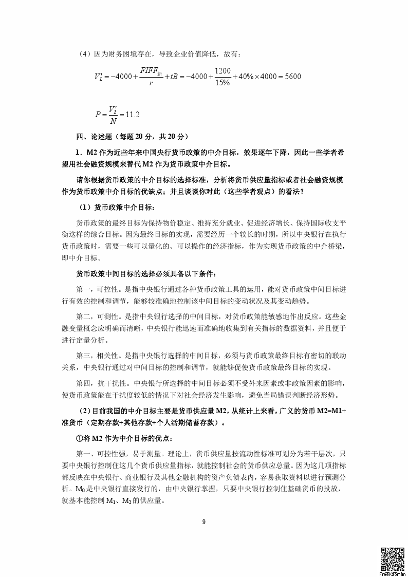 2018年 经济学。论述题4道,每道25分。 1.简要介绍寡头共谋现象,利用博弈论解释共谋的不稳定性。 2.外部性(外部影响)为什么会导致资源配置失当。 3.财政挤出效应及其影响。 4.评述新古典宏观经济学的主要思想和政策含义。 金融学。论述题6选1,其中1和2必选一个,每题25分。 1.(1)MM提出的股利政策不影响公司 ...