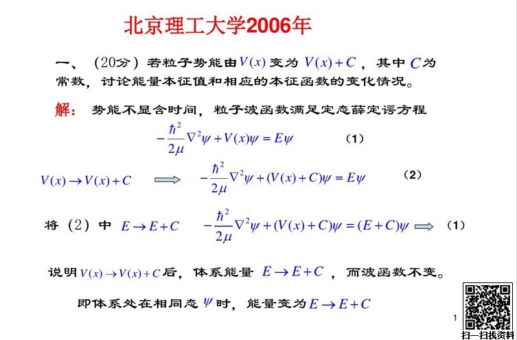 专业课考研资料 本站小编 免费考研网 2020-03-04北京理工大学2007年量子力学考研试题及答案