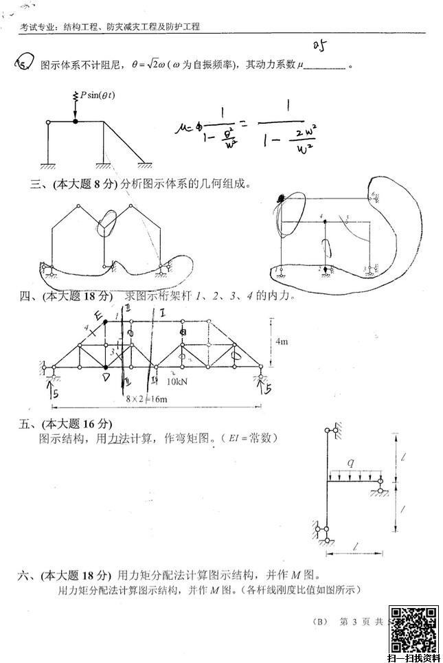专业课考研资料 本站小编 免费考研网 2020-03-052016年北京建筑大学结构力学研究生初试真题