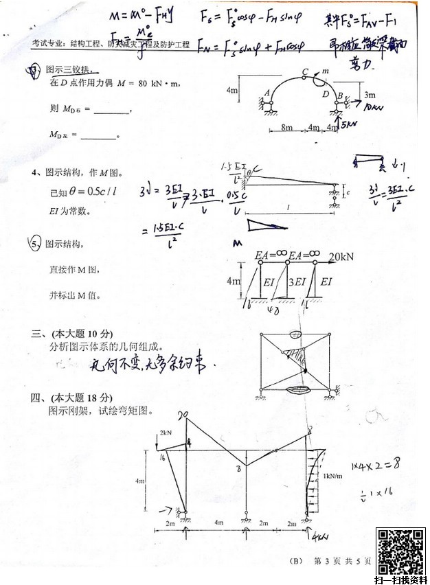 首先稍微说下初试的结构力学,题目的话和12年有些类似,选择题5道好像有一些是一样的,判断题没有了,简答题我感觉还是有点难,有一道动力学的等效荷载效应还是什么的我忘了,还有刚架为什么不需要考虑轴向变形之类的。计算题的话有体系的几何组成不难(好像是个瞬变体系),位移计算是一根梁要自己求惯性矩,含温度、荷载等 ...专业课考研资料 本站小编 免费考研网 2020-03-032009年中南大学量子力学909考研试题