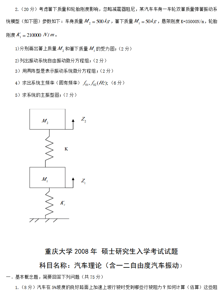 重庆大学2010-2001研究生汽车理论真题题库(14)