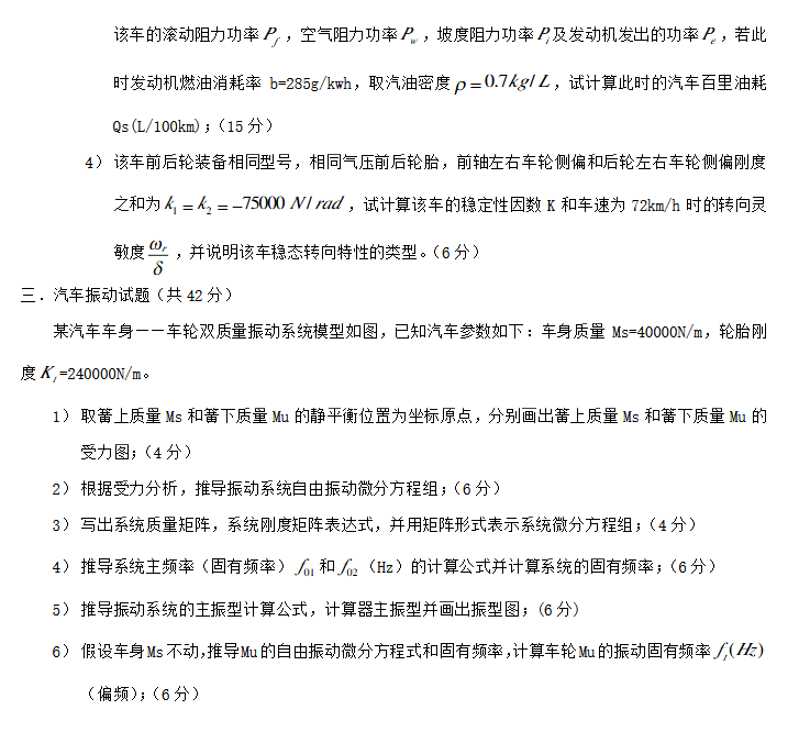 重庆大学2010-2001研究生汽车理论真题题库(16)