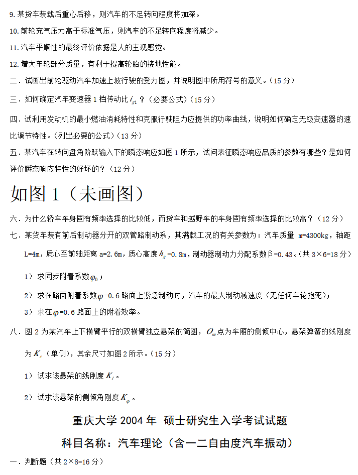 重庆大学2010-2001研究生汽车理论真题题库(4)