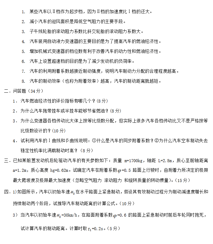 重庆大学2010-2001研究生汽车理论真题题库(5)