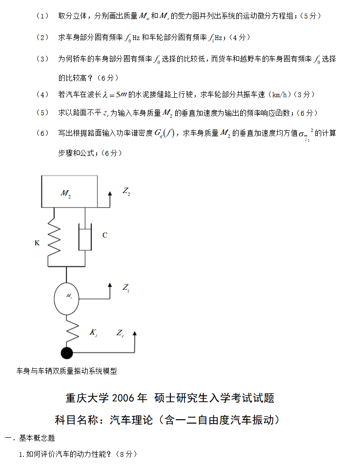 重庆大学2010-2001研究生汽车理论真题题库(9)