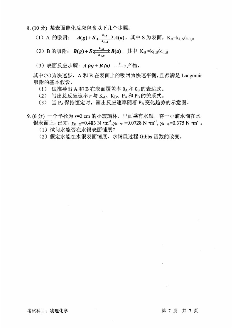 中国科学技术大学2016-2011物理化学考研真题和答案(14)