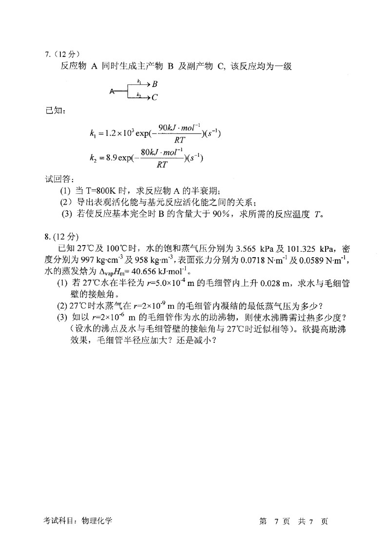 中国科学技术大学2016-2011物理化学考研真题和答案(28)