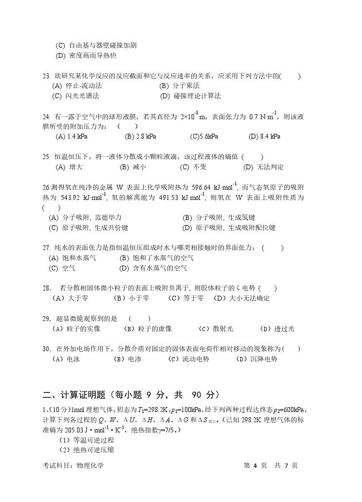 中国科学技术大学2016-2011物理化学考研真题和答案(4)