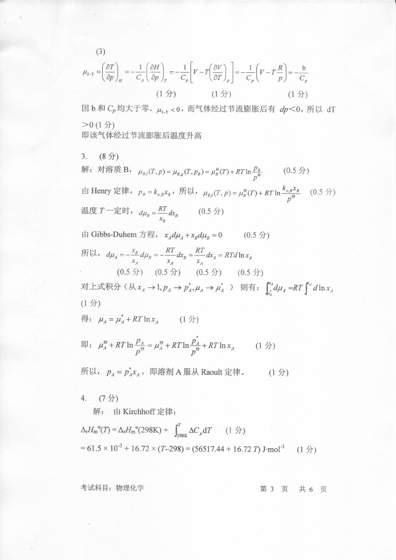 中国科学技术大学2016-2011物理化学考研真题和答案(47)