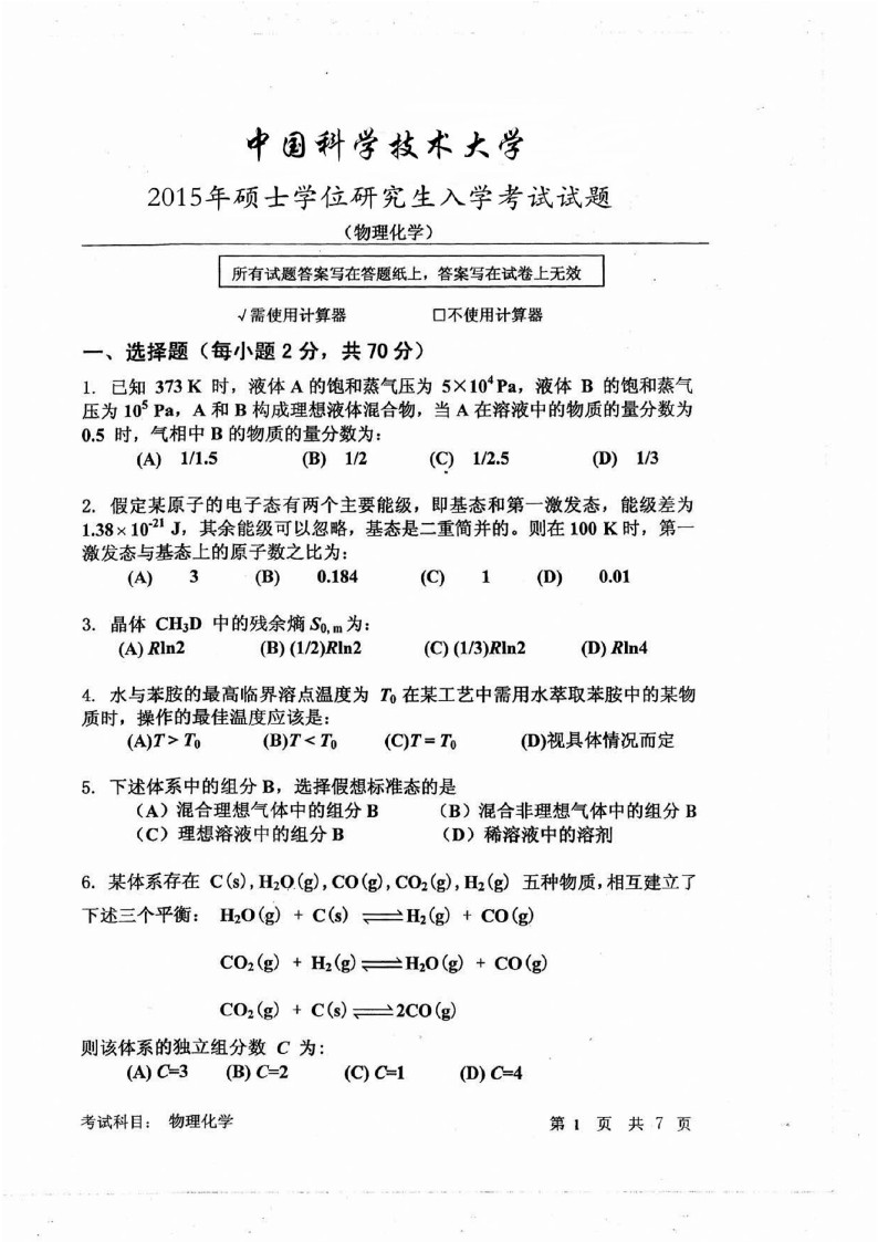 中国科学技术大学2016-2011物理化学考研真题和答案(8)