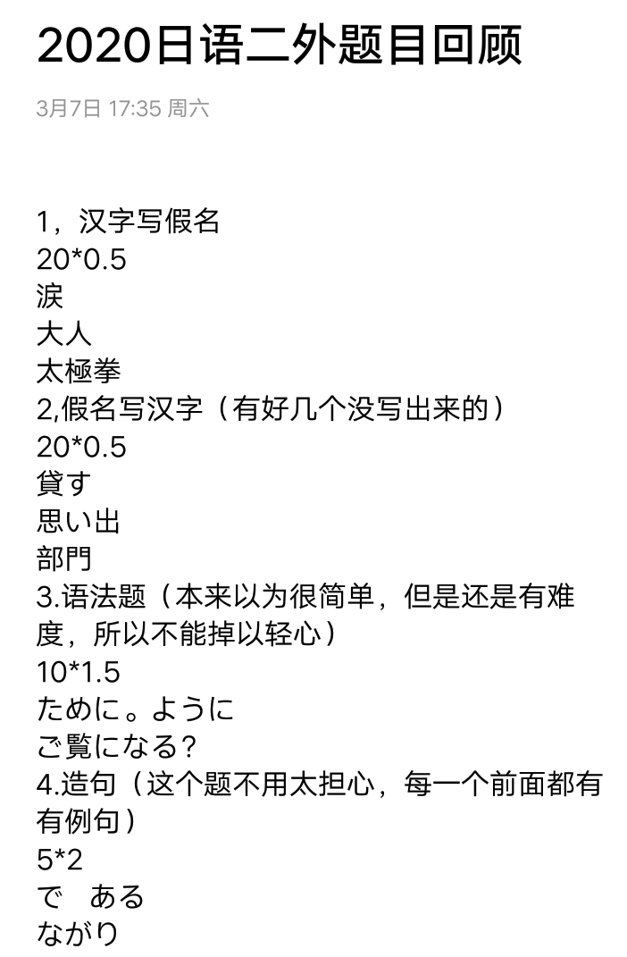 题目写的2020年的考题,其实是2019年的考生,2020年上学的年份。所以这份回忆是2019年12月21日的考题哦。 关于华工附近的衣食住行:建议有条件的同学先提前去了解一下。也可以当是参观华工哦!也可以看我发的2017年的帖子了解一下,但是三年过去了,或许已经发生了很大变化,大家可以加一些华南理工大学的群进行了解。 ...专业课考研资料 本站小编 免费考研网 2020-03-022020年日语专业四级题库【历年真题+章节题库+模拟试题】