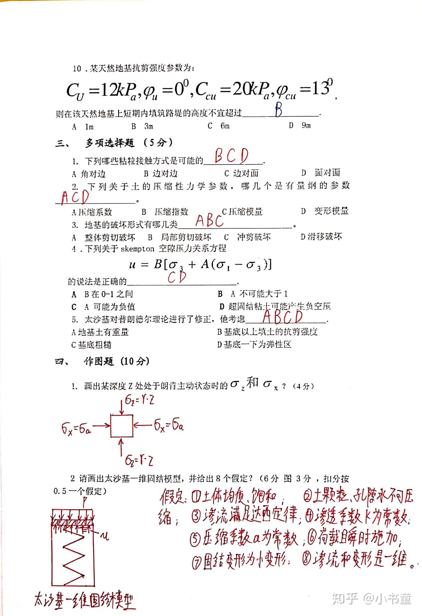 1、题目有错误,我给补上了,所以对这份真题的真实性很怀疑,错别字也很多,题目也有错误,条件缺少,最后算Zo时缺少粘聚力C