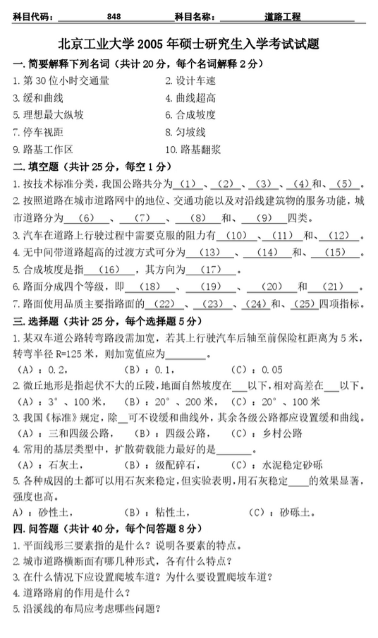专业课考研资料 本站小编 免费考研网 2020-03-17科目代码:848 科目名称:道路工程