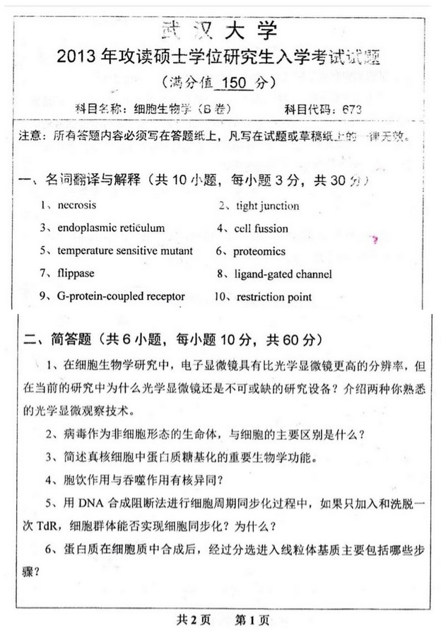 名词解释:(10题每题5) 1、收缩环 2、生殖质 3、胚胎诱导 4、嵌合体 5、细胞拆和 6、多线染色体 简答:(5题每题10,有一道题是论述题忘了是哪道了论述题25) 1癌基因如何使细胞恶性增殖 2、线粒体如何调控细胞凋亡 3、细胞骨架在细胞分裂中的作用及秋水仙碱长春花碱 ...