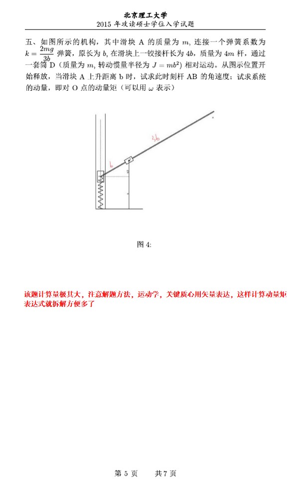 2015北京理工大学848理论力学考研真题(4)