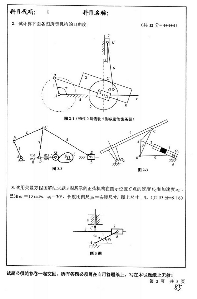 2010中国矿业大学808机械原理考研真题分享下载(2)